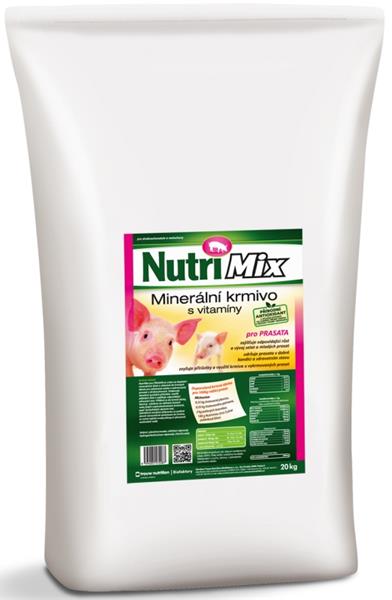PROBLÉM Nedostatočná alebo nevyvážená kŕmna dávka pre ošípané v odchove alebo vo výkrme má za následok znížené prírastky, nižšiu využiteľnosť krmiva, menšiu životaschopnosť a horší zdravotný stav. RIEŠENIE Nutrimix pre ošípané je určený na doplnenie minerálnych látok a vitamínov do kŕmnych dávok pre odstavené prasiatka a vykrmované ošípané v drobnochovoch. Podporuje dosiahnutie vysokých prírastkov, využitie prijatých živín a zaisťuje zodpovedajúci zdravotný stav. Pridáva sa do kŕmnej dávky, ktorá je založená na obilných šrotoch alebo iných neplnohodnotných krmivách, popr. kuchynských zvyškoch atď. ZLOŽENIE v 1 kg: vápnik 180 g, fosfor 33 g, sodík 20 g, lyzín 42 g, metionín 1 g, threonin10 g, vitamín A 85 000 IU , vitamín D3 15 000 IU , mg , vitamín B2 40 mg, vitamín B12 0,2 mg, betaín 900 mg, železo 500 mg, zinok 1 310 mg, meď 230 mg, mangán 450 mg, jód 10 mg, selén 2,8 mg, prírodný antioxidant 100 mg, bylinné extrakty na zlepšenie príjmu krmiva a redukciu tvorby amoniaku 2 700 mg. SPÔSOB APLIKÁCIE Odmerané množstvo prípravku sa podáva denne rovnomerne zamiešané do krmiva. Je nutné zaistiť trvalý prístup k zdravotne nezávadnej vode. DÁVKOVANIE Prasiatka 8 - 20 kg živej hmotnosti: 30 - 60 g / 1 ks / deň Ošípané 20 - 100 kg živej hmotnosti: 60 - 120 g / 1 ks / deň Ošípané nad 100 kg živej hmotnosti: 120 g / 1 ks / deň ( 1 plná polievková lyžica - cca 33 g) ODPORÚČANÁ KRMNÁ DÁVKA PRE 100 KG VÁŽIACE PRASE: miešačka - 350 g pšeničného šrotu, 350 g jačmenného šrotu, 2 kg parených zemiakov, 100 g Nutrimixu.