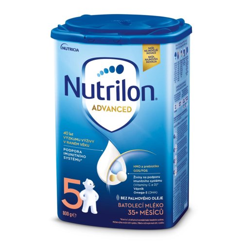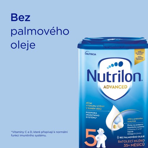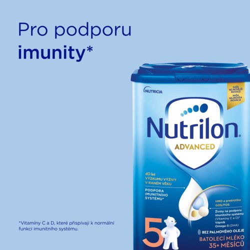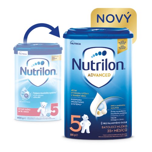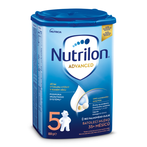Objavte našu najnovšiu inováciu mliek Nutrilon 5 Advanced, špeciálne vyvinutú pre PODPORU IMUNITNÉHO SYSTÉMU A NORMÁLNEHO VÝVOJA. Naše jedinečné zloženie obsahuje našu patentovanú zmes PREBIOTIK GOS/FOS a LCP, oligosacharid materského mlieka 3´GL (3´galaktosyllaktóza), ktorý prináša náš unikátny proces výroby, vitamíny C a D, ktoré prispievajú k podpore imunity a vápnik potrebný pre normálny rast a vývin kostí u detí. Naša inovovaná receptúra je BEZ PALMOVÉHO OLEJA.