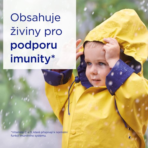 Vitamíny C a D prispievajúce k správnej funkcii imunitného systému; vápnik, ktorý je dôležitý pre správny rast a vývoj kostí u detí.
