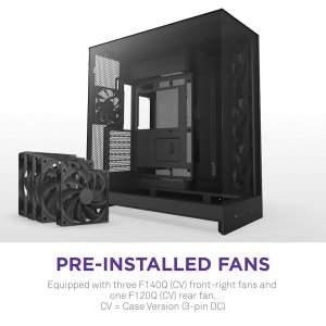 NZXT H9 Flow predstavuje štýlovú počítačovú skriňu vo formáte Middle Tower , ktorá je navrhnutá tak, aby poskytovala bohaté možnosti chladenia a vysoký výkon GPU. Rozsiahle tepelné schopnosti umožňujú inštalovať celkom až 10 ventilátorov, pričom 4 už sú osadené v základe. PC skriňa NZXT H9 Flow sa vyznačuje unikátnym dizajnom s neprerušovaným skleneným panelom. Vďaka tomu vám poskytuje jasný vhľad do interiéru.