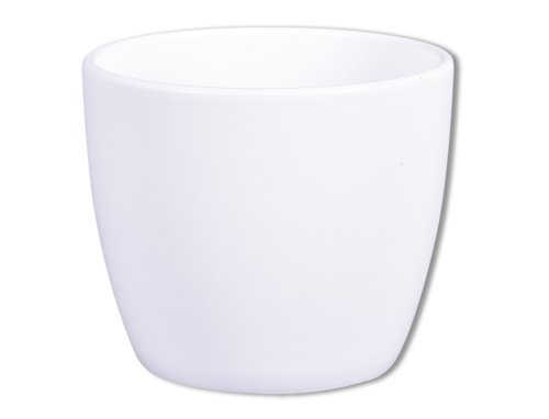 Matný obal na črepník z glazovanej keramiky. Nadčasový design, ktorý nájde uplatnenie v každom interiéri. Je jemne kónický, kruhového pôdorysu. Vhodný do interiéru. Vodeodolný. Priemer: 25 cm, výška: 22 cm. Farba: biela.