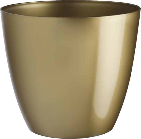 Lesklý plastový obal na kvetináče je vhodný do interiéru najmä vo vianočnom období. Obal má vyšší obsah farbiva a väčší lesk - jedná sa o luxusnejšie verziu obalov Ella. Tvar je jemne kónický. Farba: zlatá. Priemer: 13 cm.