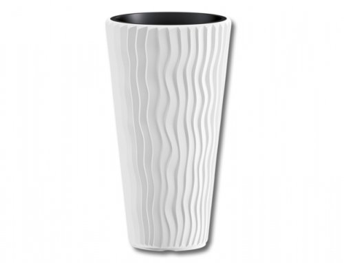 Vysoký plastový obal na črepník s vertikálnymi drážkami pripomínajúci vzor púštneho piesku. Je vhodný najmä na terasy a do zimných záhrad. Farby sú odolné voči slnečnému žiareniu, nízkym teplotám a mechanickému poškodeniu. Priemer: 39 cm, výška: 71 cm.