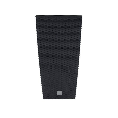 Vysoký plastový obal na črepník s textúrou imitujúcou ratanový výplet. Tento obal je skvelým doplnkom štýlových interiérov. Je vhodný do interiéru aj exteriéru, je odolný voči UV žiareniu. Súčasťou je čierna vnútorná vložka. Farba: antracitová. Rozmery: 27 x 27 cm, výška: 50 cm.