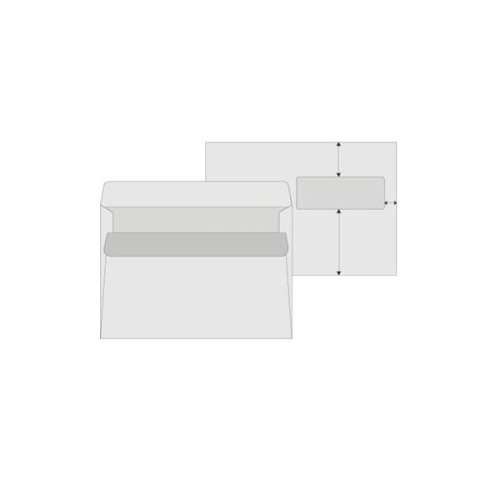 Listové obálky formátu C5 s okienkom vpravo Okienko vpravo - rozmery: 10,4 x 4,2 cm (umiestnenie: podľa slovenskej normy 14 mm sprava, 80 mm odspodu) Rozmery: 22,9 x 16,2 cm Gramáž: 80 g/m2 Samolepiace Farba: biela