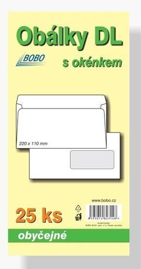Obálky 220x110 mm, balenie 25 ks.<br> ; <br> Balenie klasických poštových obálok vo formáte DL. Balíček obsahuje 25 kusov obyčajných obálok s okienkom.