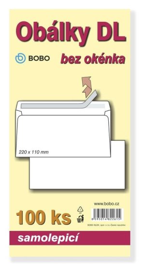 Obálka DL bez okienka, samolepiaca Balenie po 100ks.<br><br> Balenie klasických poštových obálok vo formáte DL. Balíček obsahuje 100 kusov samolepiacich obálok.