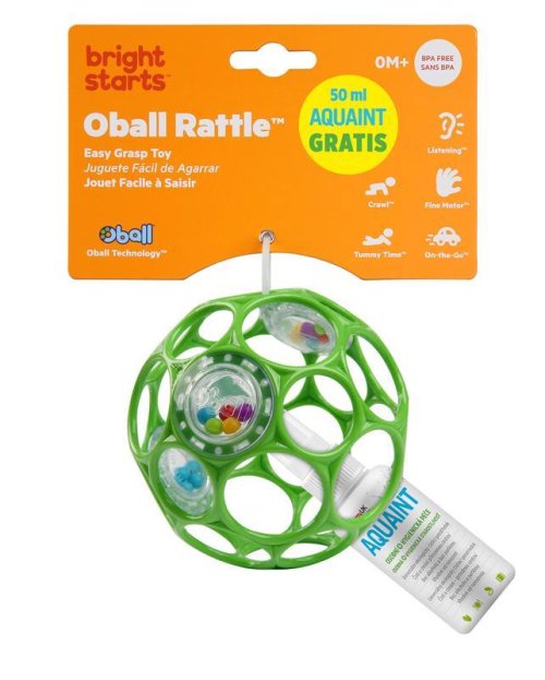 S hrkálkou od Oball vaše dieťatko zažije veľa zábavy pri získavaní prvých zručností. Táto ocenená balóniková hrkálka sa stane obľúbenou hračkou dieťatka. Jednoduchý dizajn od Oball zaisťuje to najjednoduchšie uchopenie aj pre tie najmenšie rúčky, čo vaše dieťatko bude tešiť. Loptička má 29 dierok, ktoré práve umožnia dieťatku ľahké uchopenie. Je vyrobený z ľahkého materiálu, preto loptička nebude ťažká pre drobné rúčky. V loptičke sa nachádzajú tri hrkálky vyplnené farebnými korálkami, ktoré vydávajú zábavné zvuky už pri najmenšom zatrasení. Tieto zvuky neustále povzbudzujú dieťatko, aby loptička držalo v rukách a triaslo s ňou.