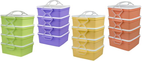 rozmery (Ď x Š x V): 17 x 15 x 25 cm 4 diely: 4 x 1,2 l materiál: plast mix farieb: žltá, oranžová, červená, modrá, zelená