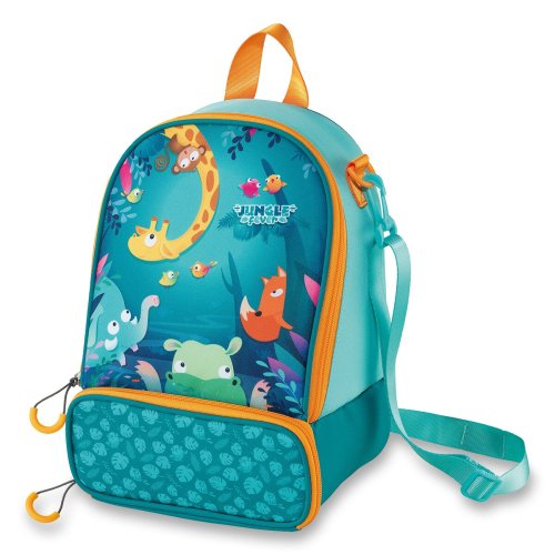 Obedový batôžtek z kolekcie Miniz v dizajne Jungle Fever s veľkou hlavnou komorou a malým izolovaným vreckom, ktoré pomáha udržať potraviny čerstvé a chladné.