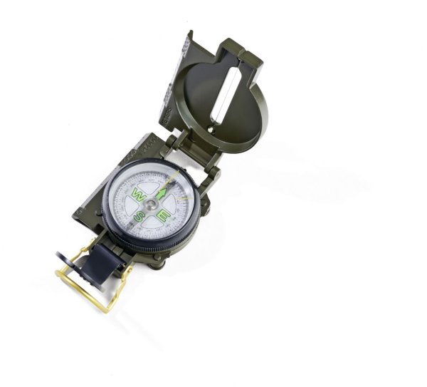 Kompas s kovovým puzdrom s výklopným vekom a plexi. Veľkosť kompasu 5,2 cm.