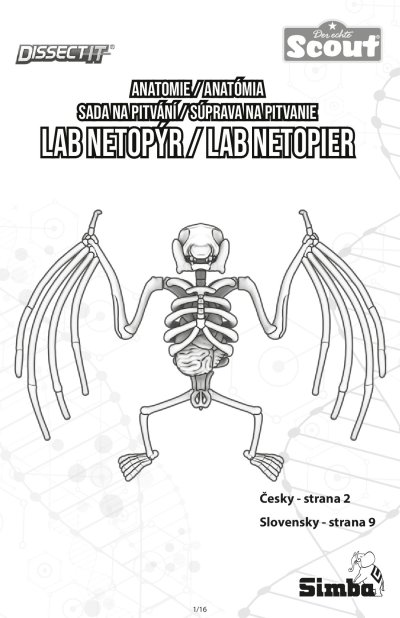 Sada s nástrojmi k pitve netopiera, ktorého kosti a orgány sú pokryté fialovým slizom. Prvky je možné vybrať a preskúmať jednotlivo. Súčasťou je vrecko s práškom na vytvorenie opätovného slizu. Po dokončení prvej pitvy vložte orgány a kostru späť do blistra, premiešajte prášok s vodou, zalejte vzniknutým slizom a nechajte stuhnúť v chlade. Netopiera potom možno pitvať druhýkrát. Veľkosť 15 cm.