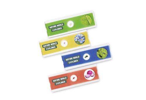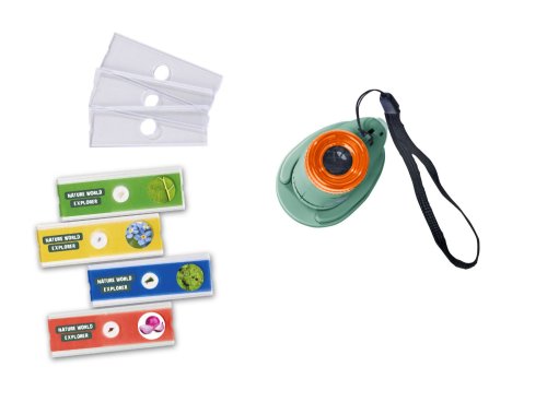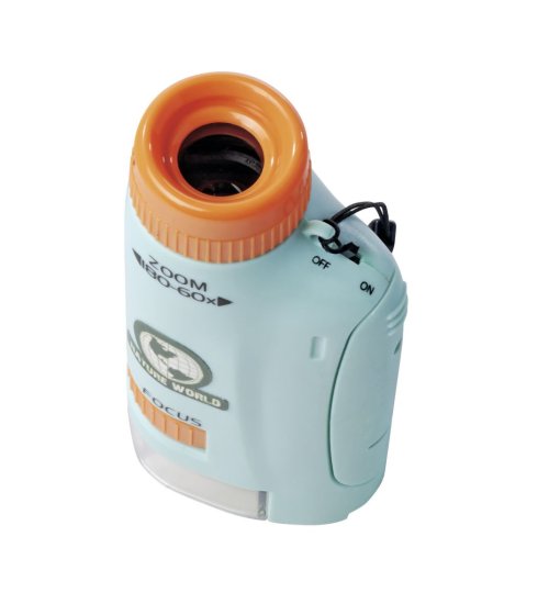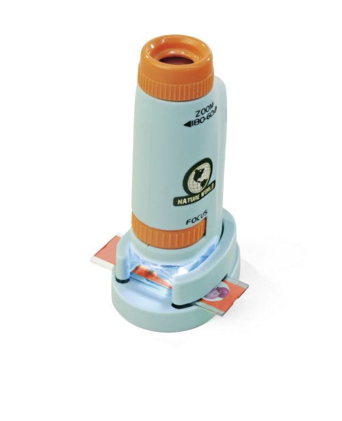 Vreckový mikroskop so svetlom so zväčšením 60-180x. Obsahuje 4 ukážkové sklíčka s preparátmi a 3 prázdne sklíčka. Veľkosť mikroskopu 11 cm.