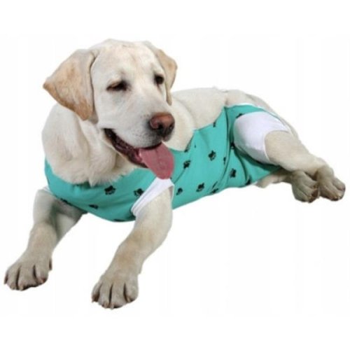 Pooperačný obleček je textilný výrobok určený pre sučky veľkých plemien, ako je napr. bernský salašnícky pes. Jeho úlohou je komfortná ochrana hrudníka a brucha pred znečistením a olizovaním. Používa sa po chirurgickom zákroku, v dermatologickej praxi a pod. Chráni pred pooperačnými komplikáciami (infekcia rany, olizovanie rany a následné predčasné odstránenie stehov). Obleček na opakované použitie je ušitý z prvotriednej vzdušnej hypoalergénnej látky, fixačné pásky a manžety sú z čistej bavlny. Použitý dizajn uľahčuje obliekanie zvieraťa a neobmedzuje ho pri fyziologických potrebách. Obleček aj manžety sú z pružného materiálu, fixačné pásky sa zaväzujú na chrbte zvieraťa. Pre určenie správnej veľkosti oblečku je dôležitá vzdialenosť medzi prednými a zadnými končatinami. Výška ani šírka trupu nie je podstatná. Ak je miera hraničná, odporúčame pre väčší komfort zvieraťa zvoliť väčšiu veľkosť. Veľkosť: XXXL Dĺžka (cca): 70 cm Údržba: Možno použiť opakovane po dôkladnej parnej sterilizácii alebo vypraní na 90 °C. Farba a vzor: Fotografia je iba ilustračná. Ide o mix variantov. Farbu a vzor zasielame podľa aktuálnej skladovej zásoby.