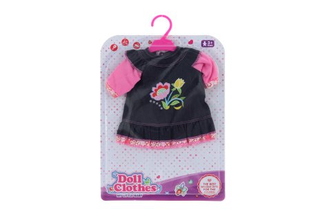 Šatičky pre bábiku o veľkosti 36-46 cm. Rozmery šiat cca 20x24 cm. Rozmery balenia cca 25x36x2 cm. Materiál polyester. Vek 3+