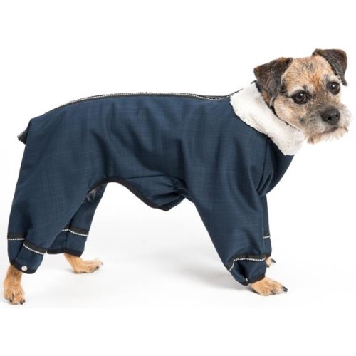 Zimná kombinéza LUNA pre psa je navrhnutá tak, aby chránila všetky dôležité partie psieho tela (vrátane končatín) pred chladom, vetrom, snehom aj dažďom. Funkčný materiál – membránový softshell – spĺňa hneď niekoľko funkcií naraz: je hrejivý, nepremokavý (s obmedzením), vetruodolný a zároveň priedušný. Vrchnú vrstvu tvorí mäkká tkanina s hladkým povrchom, ktorý je vodoodpudivý a nelepí na ňom sneh. Pod ňou je vetru- a vodeodolná membrána podšitá príjemným baránkom. Okraje kombinézy sú obšité elastickým lemom a nohavice je možné zopnúť praktickými patentkami, aby oblek nikde neodstával a neprefukoval. Pre ľahké obliekanie a vyzliekanie má kombinéza zips cez celý chrbát. Za krkom je otvor na pripnutie vodidla k obojku. Samozrejmosťou sú reflexné prvky. Vlastnosti oblečku: