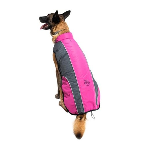 Zimná vesta ESMÉ LUX ochráni vášho psa pred chladom, vetrom, dažďom aj snehom. Vrchná vrstva z bundovej tkaniny s vodeodolným záterom je zateplená vafixom a podšitá mäkkým flanel fleecom, ktorý nezamotáva srsť. Obleček je tvarovaný tak, aby psa neobmedzoval v pohybe, a pritom chránil všetky dôležité partie jeho tela. Gumičky na stehná a na chvostík zaisťujú, aby vesta neodstávala v zadnej časti, a elastický lem bráni úniku tepla po celom obvode oblečku. Za krkom je otvor na pripnutie vodidla k obojku a pútko na zavesenie (pri sušení atď.). Obliekanie je ľahké a rýchle: vesta sa zapína na suché zipsy - 1 pod krkom a 1 pod hrudníkom. Samozrejmosťou sú reflexné prvky. Do veľkosti 45 cm je súčasťou oblečku odnímateľná zateplená kapucňa. Od veľkosti 50 cm má obleček zateplený stojačik (bez kapucne). Vlastnosti oblečku: