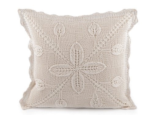 Pletené azúrové obliečky na vankúše sú dozdobené háčkovanou čipkou. Sú ideálne na vytvorenie útulnej atmosféry. Dodajú vintage alebo boho atmosféru každému interiéru. Na zadnej strane sa zapínajú na zips. Na prednej strane vankúša je čipka, zadná strana je jednofarebná. Čipka presahuje cez okraj textilného poťahu. Toto je obliečka na vankúš, výplň môžete kúpiť zvlášť. Textilný poťah (rozmery na výplň vankúša) sú 45 x 45 cm. Celkové rozmery vankúša, vrátane háčkovanej čipky na okrajoch sú cca 50 x 50 cm.