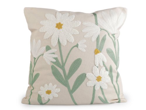 Obliečku na vankúš zdobí dizajnová výšivka kvetov, bude sa v interiéri vynímať celoročne.