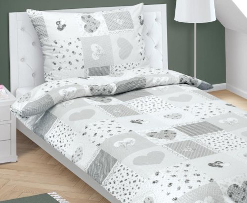 Obliečky bavlnené s hotelovým vreckom - 140x200, 70x90 cm - Srdce