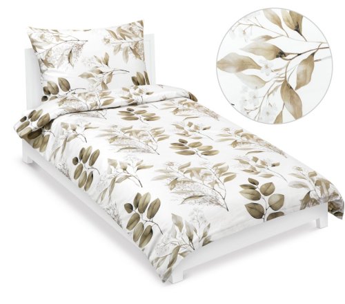 Obliečky bavlnený satén - 140x200, 70x90 cm - Listy