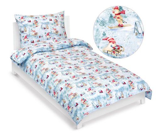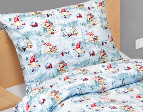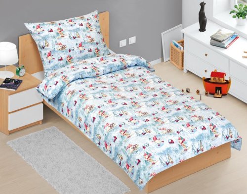 Obliečky detské - Vianoce - 140x200, 70x90 cm - Škriatok na korčuliach