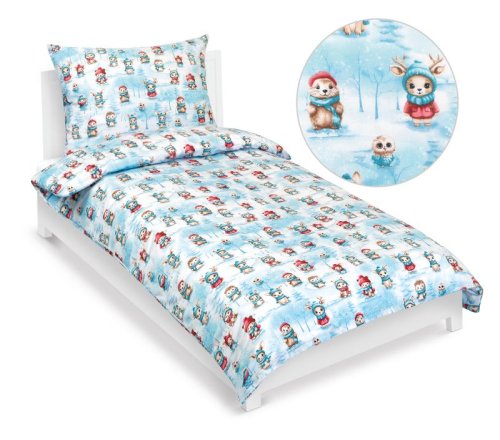 Obliečky detské - Vianoce - 140x200, 70x90 cm - Zvieratká v zime