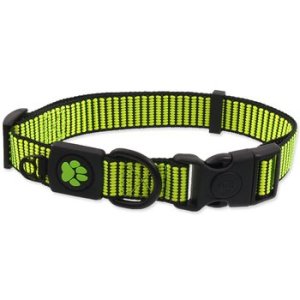Pevný nylonový obojok s gumovou sponou na nastavenie veľkosti.