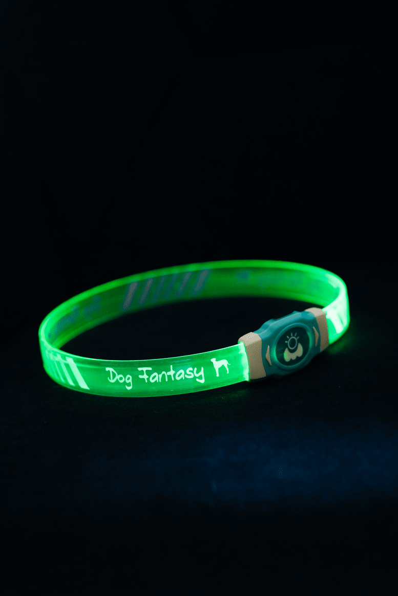 Nabíjací LED obojok Dog Fantasy je spoľahlivým pomocníkom pre bezpečné venčenie za šera a tmy. Vďaka nastaviteľnému dĺžke padne každému psovi a ponúka dva režimy svietenia v atraktívnych farbách .