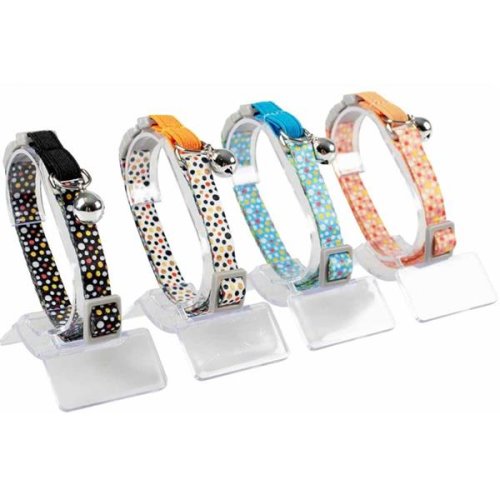 Nylonový obojok Colourful Balls je vhodný pre mačky všetkých plemien. Má nastaviteľnú dĺžku a zapína sa na bezpečnostnú sponu, ktorá je špeciálne navrhnutá tak, aby sa rozpojila, pokiaľ sa vaša mačka zachytí obojkom o vetvu alebo plot. Pri sile ťahu 2 kg a viac sa spona okamžite uvoľní. Obojok je opatrený rolničkou, ktorá upozorní vtákmi na prítomnosť mačacieho predátora.