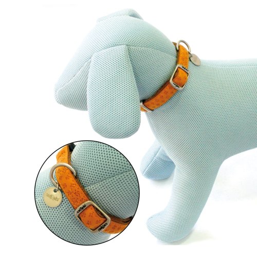 Elegantný a odolný obojok vyrobený z mäkkej imitácie kože s reliéfnymi dekoráciami.