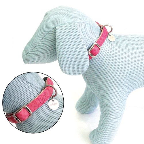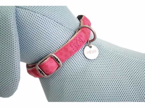 Elegantný a odolný obojok vyrobený z mäkkej imitácie kože s reliéfnymi dekoráciami.