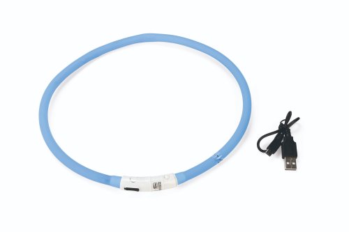 LED svetelný obojok modrý viditeľný až cca 500 m. Dobíjacie batérie pomocou USB kábla - žiadne iné batérie nutné - vodeodolná - blikajúce svetlo alebo kontinuálne svetlo. Veľkosť 20-70 cm