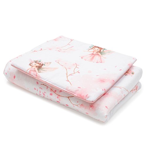 Nádherný obojstranný set New Baby Víly do kočíka. Set je vyrobený z dvoch typov tkanín. Bavlnený materiál s krásnym detským motívom z jednej strany a Velvet materiál z druhej strany. Velvet je veľmi príjemný a jemný na dotyk a po dlhú dobu si zachováva svoj pôvodný tvar. Je ideálny ako pre bábätká od narodenia, tak aj pre väčšie deti ako deka na hranie, do kočíka alebo na von. Set obsahuje vankúšik a prikrývku. Kladieme dôraz na kvalitu a preto je set z Velvet ušitý z veľmi kvalitného materiálu, ktorý nepúšťa farbu a nevyvoláva alergické reakcie. Set je jemný na dotyk, hrejivý, tulivý, jedinečný a veľmi odlišný od ostatných. Všetko je vyplnené antialergickým vláknom. Zloženie: z jednej strany 100% bavlna potlačená krásnym detským vzorom, druhá strana je Velvet látka-100% polyester, výplň 100% antialergické vlákno. Materiál zodpovedá norme Oeko-Tex Standard 100. Rozmery: vankúšik: cca 30x25 cm, prikrývka: cca 75x50 cm. Tieto výrobky sú bezpečné, pretože:<BR>- prírodná bavlna nespôsobuje odreniny a podráždenie, pretože neobsahuje formaldehydy a ďalšie prvky, ktoré dojčatám škodia<BR>- nestráca farbu a nezafarbuje oblečenie<BR>- ponúkané vzory sú príjemné na pohľad a majú upokojujúce farby<BR>- nie sú použité žiadne gombíky ani žiadne ďalšie plastové alebo oceľové časti, ktoré môžu byť pre Vaše dieťa nebezpečné<BR>- materiál, ktorý je používaný pre výplne vankúšov a prikrývok, je 100% protialergický, čo znamená, že sa v jeho vláknach nešíri žiadne mikroorganizmy ani pleseň <BR>Produkt českej značky.