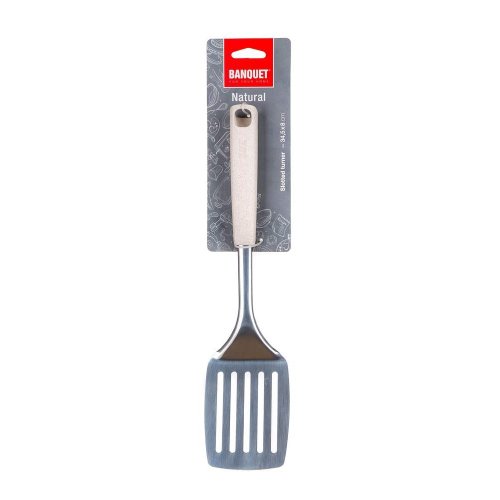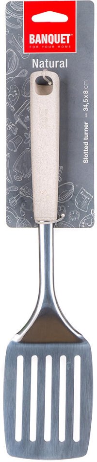 Obracačka s otvormi NATURAL vyrobená z nerezovej ocele, je určená na profesionálne aj domáce použitie. Obracačka je opatrená praktickým očkom pre možnosť zavesenia, ľahko sa udržuje a je možné umývať v umývačke riadu. Rad kuchynského náčinia NATURAL spĺňa náročné požiadavky profesionálov a je vhodný aj na domáce použitie. Jednoduchý funkčný dizajn zabezpečuje nadčasovosť a dlhú morálnu i kvalitatívnu životnosť všetkých výrobkov. Držadlo je vyrobené z polypropylénu a pšeničných otrúb.