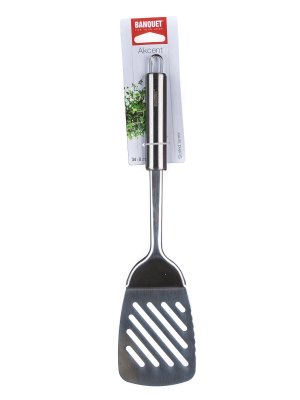 Obracačka s otvormi AKCENT, vyrobená z nerezovej ocele, je určená na profesionálne aj domáce použitie. Obracačka je opatrená praktickým očkom pre možnosť zavesenia, ľahko sa udržuje a je možné umývať v umývačke riadu. Rad kuchynského náčinia AKCENT spĺňa náročné požiadavky profesionálov a je vhodný aj na domáce použitie. Jednoduchý funkčný dizajn zabezpečuje nadčasovosť a dlhú morálnu i kvalitatívnu životnosť všetkých výrobkov.