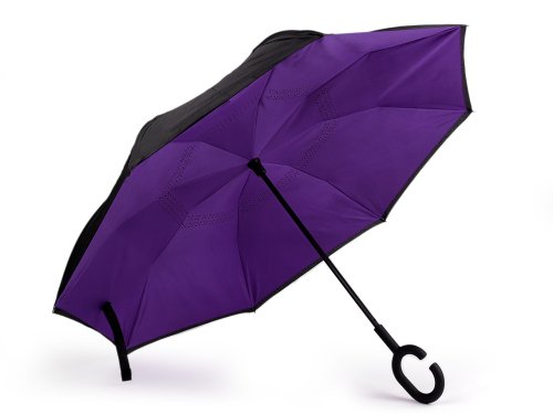 Obrátený dáždnik s okrasne perforovaným vnútorným poťahom má revolučné riešenie konštrukcie. Vďaka opačnému otváraniu a zatváraniu dáždnika smerom nahor voda zostane schovaná vo vnútri v dáždniku. Je to veľká výhoda napr. keď sadnete do automobilu, voda na vás už pri zatváraní nestečie, ale zostane v dáždniku. Iste oceníte aj jeho praktické sušenie. Dáždnik sám stojí, stačí ho postaviť na vhodné miesto a voda sama stečie von, dáždnik už nemusíte roztvárať. Rukoväť v tvare C umožňuje dáždnik zaháknuť priamo na ruku, vaše ruky zostanú voľné napr. na telefonovanie. Dáždnik má klasickú tyč zakončenú pevnou pogumovanou soft touch rukoväťou v tvare C. Má dvojitý poťah, spodné má odvetrávanie. Skladá sa z 8 výsečí. Vďaka dvojitej konštrukcii, ktorá je schovaná medzi poťahmi, má dáždnik vysokú pevnosť a stabilitu. [Dáždniky založené na rovnakom princípe, len v iných dizajnoch, nájdete aj na karte 530028.]