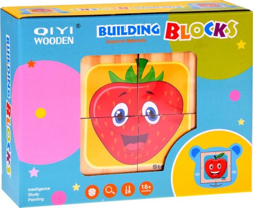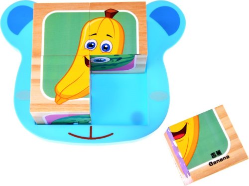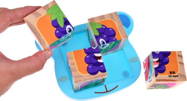 Drevené obrázkové kocky poslúžia ako nielen ako skladačka, ale aj ako prvá jednoduchá stavebnica najmä pre obľúbenú hru - stavanie a búranie komínov. Detské kocky precvičia u najmenších detí predstavivosť aj jemnú motoriku prstov. Staršie deti pri skladaní obrázkov rozvíja fantáziu, orientáciu a logické myslenie, a kocky ich motivujú k rozprávaniu príbehov. Sada obsahuje: 6 obrázkov - 4 kocky balené v kartónovej krabičke plastový stojan Rozmer kocky: 4,5 x 4,5 x 4,5 cm