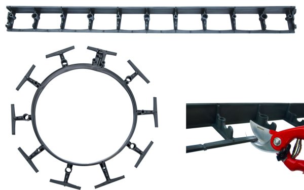 Obrubník je vyrobený z modifikovaného polypropylénu a je odolný proti poveternostným vplyvom. Jednoduchým nastrihnutím okraja v stenčenej časti je možné obrubník ľahko ohýbať do ľubovoľného tvaru. Ideálna na oddelenie trávnika od kvetinových záhonov, dlažby, betónových plôch a pod.