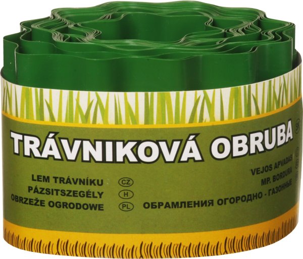 Trávniková obruba jednoznačne definuje okraj trávnika, ktorý pevne a trvalo oddeľuje trávnik od záhonov. Okraj je dodávaný v šírke 20 cm a návine 9 m. Obruba trávnika by mala nad povrchom pôdy presahovať len toľko, aby ho kosačka nepoškodila.