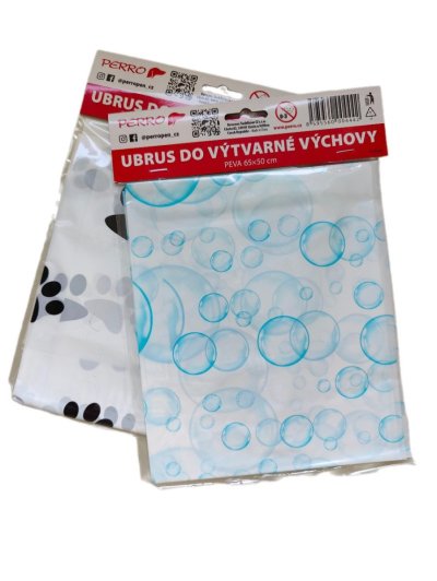 Ochranný obrus na lavici, materiál PEVA, rozmer 65 x 50 cm, mix designov: čierne labky a modré bublinky.
