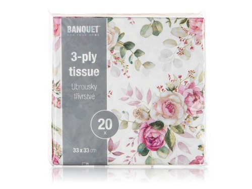 Obrúsky 33 x 33 cm, PINK ROSE, 3vrstvové (20 ks). rozmery: 33 x 33 cm balenie: 20 ks Papierové jedálenské obrúsky PINK ROSE s dekorom ruží, 3vrstvové.