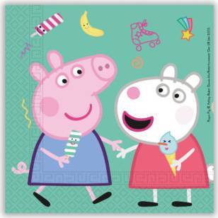 Papierové obrúsky s motívom Prasiatko Pepa. Rozmery 33 x 33 cm.