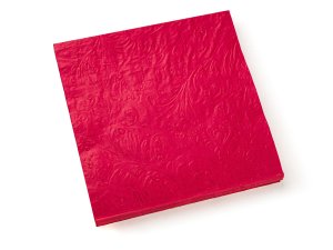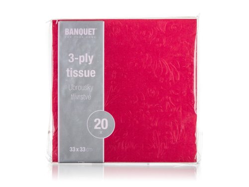 Papierové jedálenské obrúsky s bordó reliéfom 3vrstvové, rozmer 33 x 33 cm. Sú balené v sade 20 ks. Papierové obrúsky sú nevyhnutnou súčasťou nielen pri slávnostnom stolovaní, ale aj pri každodennom použití pri príprave desiat do školy alebo na výlet.