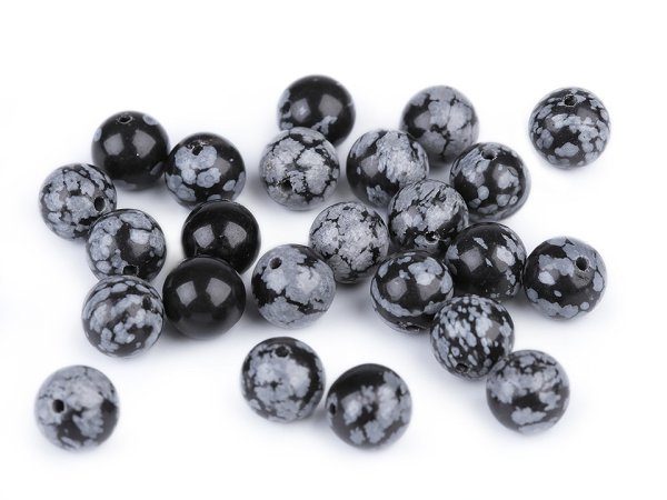 Minerálne korálky z vločkového obsidiánu sú obľúbené predovšetkým šperkármi pre svoju jedinečnú kresbu. Svojou veľkosťou sú ideálne na výrobu Buddhových náramkov. Sú obľúbené na techniku drôtovania, v kombinácii s drahými kovmi, ale aj s obyčajnými drôtikmi. Skvele vyzerajú aj na jednoduchých návlekových šnúrach, [ktoré zaujímavo ozvláštnia.]