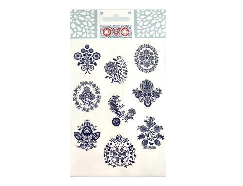 Obtlačky na klasické zdobenie vajec v dizajne motívov modrotlače. Tradičné motívy a klasické použitie s máčaním vo vode a prenesením motívu na varené vajcia. Balenie obsahuje 9 obtlačkov. Farba: modrá.