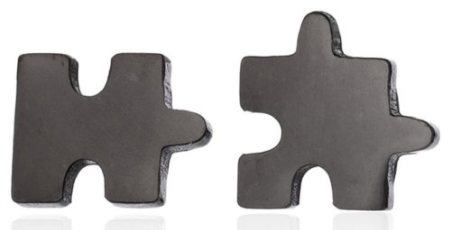 Originálne puzzle náušnice z chirurgickej ocele. Dizajnové puzzle náušnice sú vyrobené z chirurgickej ocele s akostným označením 316L. Približná veľkosť jednej náušnice: 0,8 x 0,5 cm Typ uzáveru: puzeta Povrchová úprava: čierna Materiál: chirurgická oceľ