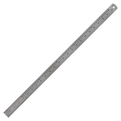 Oceľové rezacie pravítko najvyššej kvality Z kvalitnej nerez ocele vybavenej stupnicou v cm a palcoch, milimetrová stupnica Má delenie po 0,5 mm, na zadnej strane umiestnená prevodná tabuľka