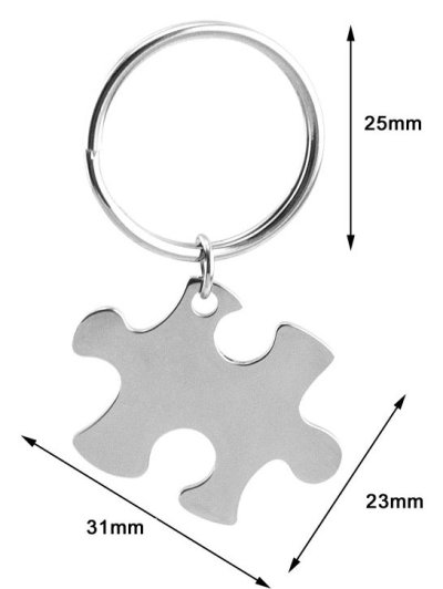 Originálne puzzle prívesok na kľúče z chirurgickej ocele s hladkou povrchovou úpravou, bez potlače alebo rytia. Približná veľkosť prívesku: 3,4 x 2,3 x 0,2 cm Materiál: chirurgická oceľ (povrchová úprava lesk)