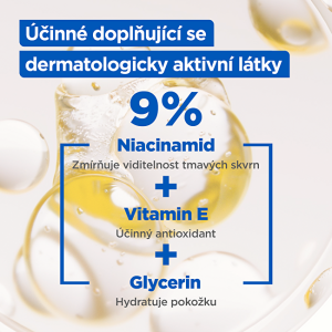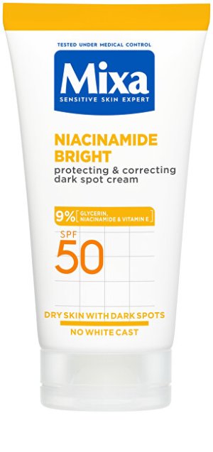 Ochranný a korekčný krém proti tmavým škvrnám na suchú pleť s SPF 50. Krém pôsobí proti tmavým škvrnám a poskytuje veľmi vysokú ochranu pred UVA a UVB slnečným žiarením. Obsahuje niacínamid, ktorý pomáha rozjasňovať pleť a znižovať výskyt tmavých škvŕn. Ďalej silný antioxidant vitamín E, ktorý udržuje v pleti vlhkosť, aby vyzerala žiarivo a zdravo. A nakoniec glycerín známy pre svoje intenzívne hydratačné a ochranné vlastnosti.